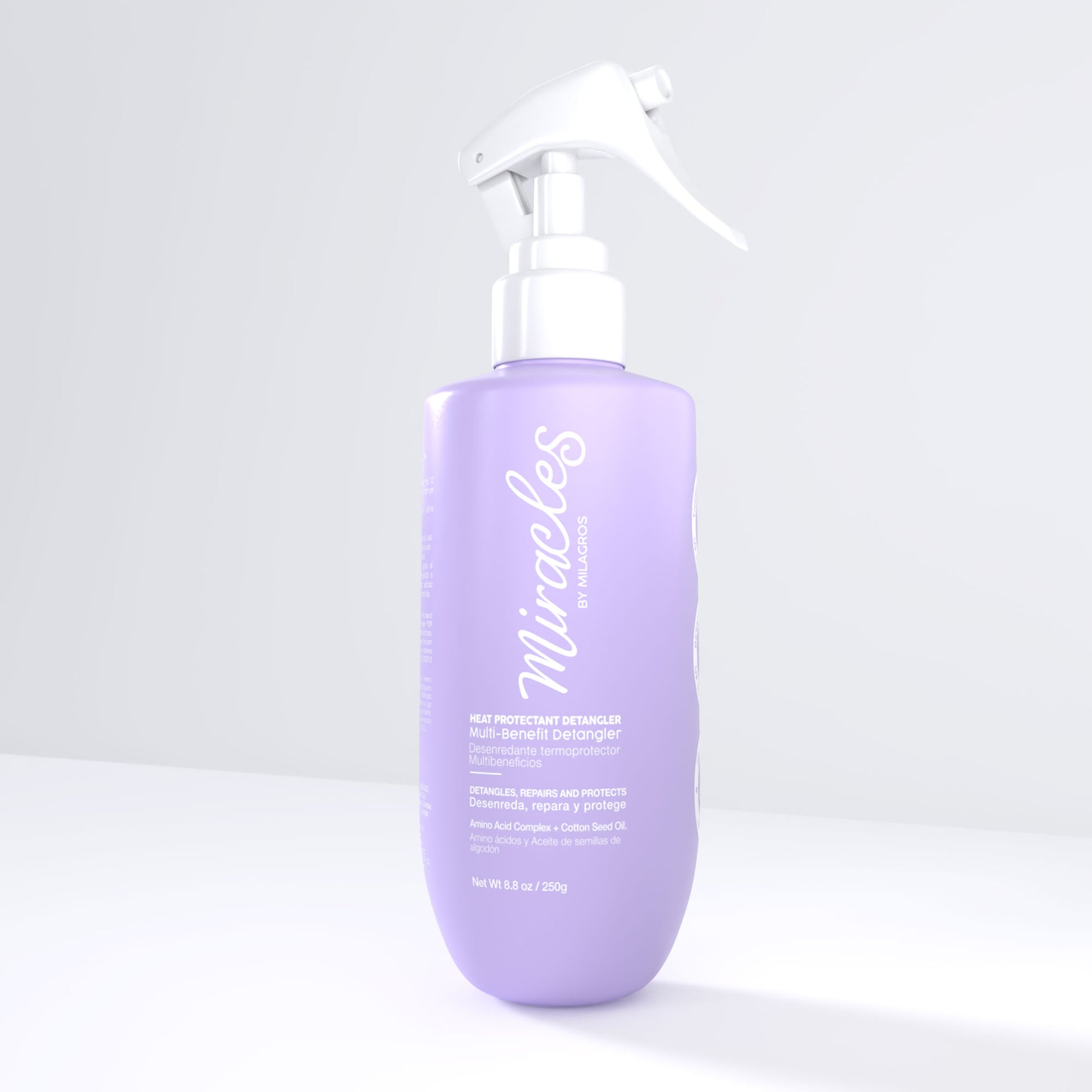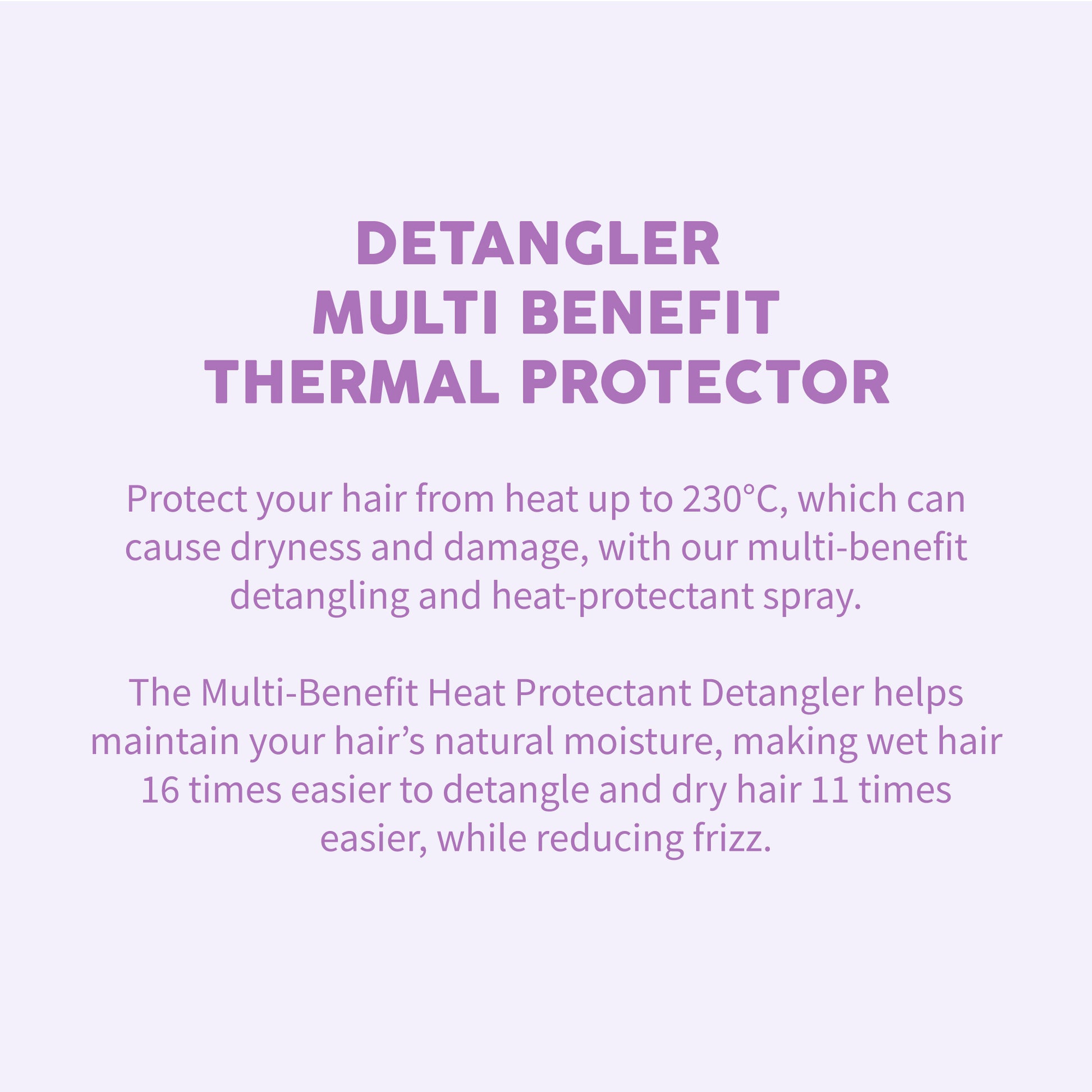 The Multi-Benefit Heat Protectant Detangler helps maintain your hair’s natural moisture, making wet hair 16 times easier to detangle and dry hair 11 times easier, while reducing frizz.