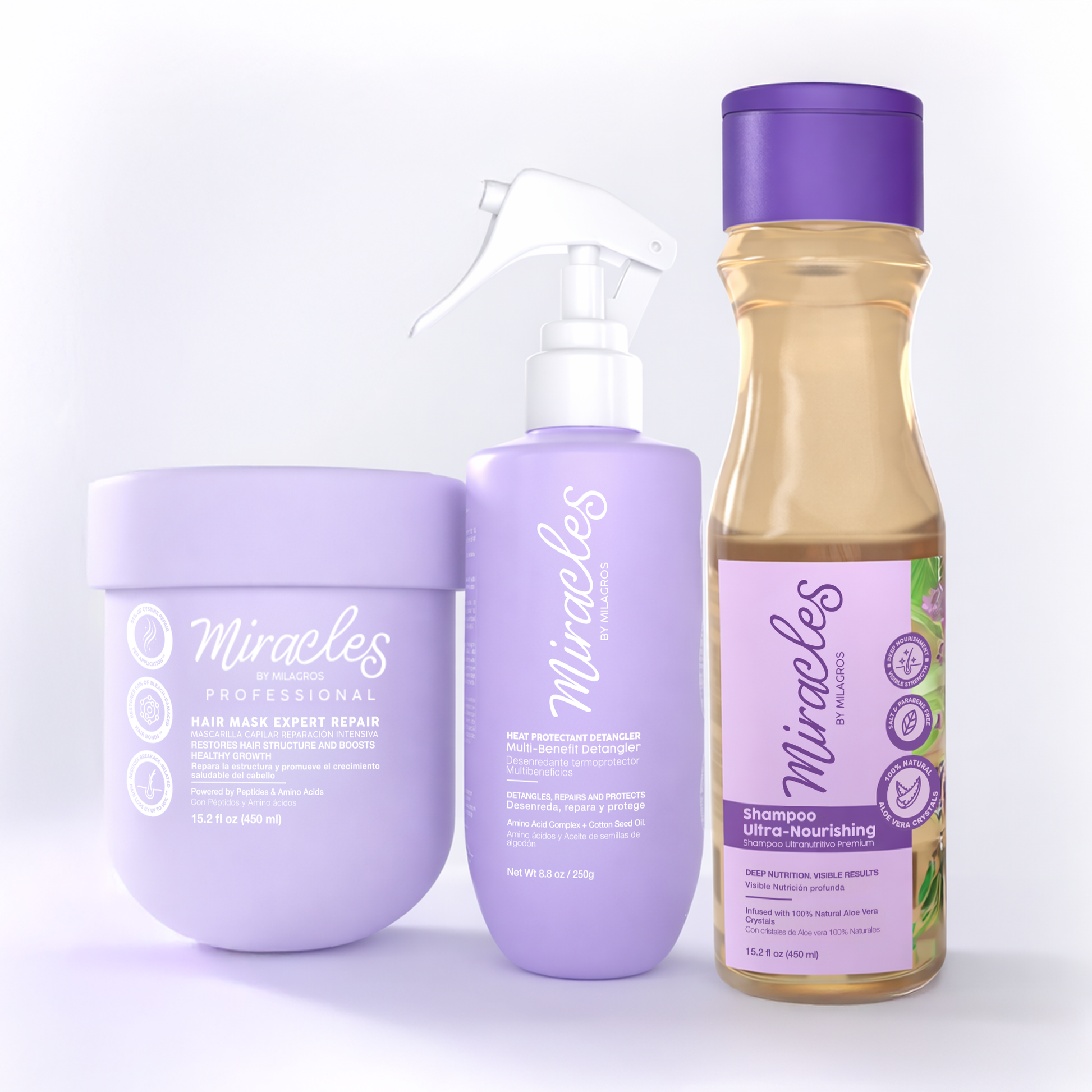 Together, these three essentials deliver intensive repair, deep nourishment, advanced heat protection, and long-lasting smoothness and shine, making this kit ideal for damaged, dry, brittle, or chemically treated hair—leaving it stronger, healthier, and visibly revitalized.